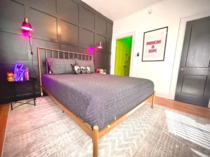 The Dim Light’s newest property offers four individual boutique-style apartments, each featuring their own brand new kitchen, modern bathroom and stylish living areas. We are located within walking distance (or a quick drive) to the most popular restaurants, bars, theaters, boutiques and convention spaces in downtown Paducah. Enjoy watching movies under the stars with our outdoor movie theatre, featuring a 20 ft screen! Take a ride around historic downtown on the bikes provided during your stay! The Dim Light: Lower Town features four completely private condos. Guests will have their own kitchen, living room, bedroom and bathroom. In addition, each apartment comes with its own private outdoor patio. However, the backyard “hang out” space is open for all of our guests to enjoy. The Outdoor Theatre is operated on a “first come first served” basis, but we do ask that you’re considerate of your fellow guests. LowerTown is one of Paducah’s oldest and most historic residential neighborhoods. Here, you’ll get the best of both worlds: super easy access to everything in Paducah and a laid back and welcoming community. LowerTown is home to Paducah’s thriving art scene where you’ll find art galleries, public art installations and Paducah’s best coffee shop (located right around the corner). We provide our guests with access to two bikes to use during their stay to explore all that Paducah has to offer. Take a quick ride down to Market House Square for Ice Cream or an evening ride along the River Front. Parking is very easy to come by in the neighborhood. We are located a couple of blocks off of “the loop”, so easy access to all areas of Paducah as well as access to the best hiking locations in the area. Garden of the God’s and Shawnee National Forest are all within about an easy drive. Kentucky Lake is located about 30 minutes away. Most things in downtown Paducah are within walking distance. However, if you prefer to drive, there’s easy parking is downtown and you can be there within 2-3 minutes. We also provide 2 bikes for our guests to use during their stay. Ride the Greenway Trail or take an evening ride along the river! Please note that we do not allow reservations from local residents in the Paducah area. Our focus is on providing quiet, relaxing accommodations for travelers and those visiting Paducah for leisure and exploring. If you have any questions on this policy and if it applies to you please contact us prior to booking a reservation to avoid any unexpected cancellations. 🙂